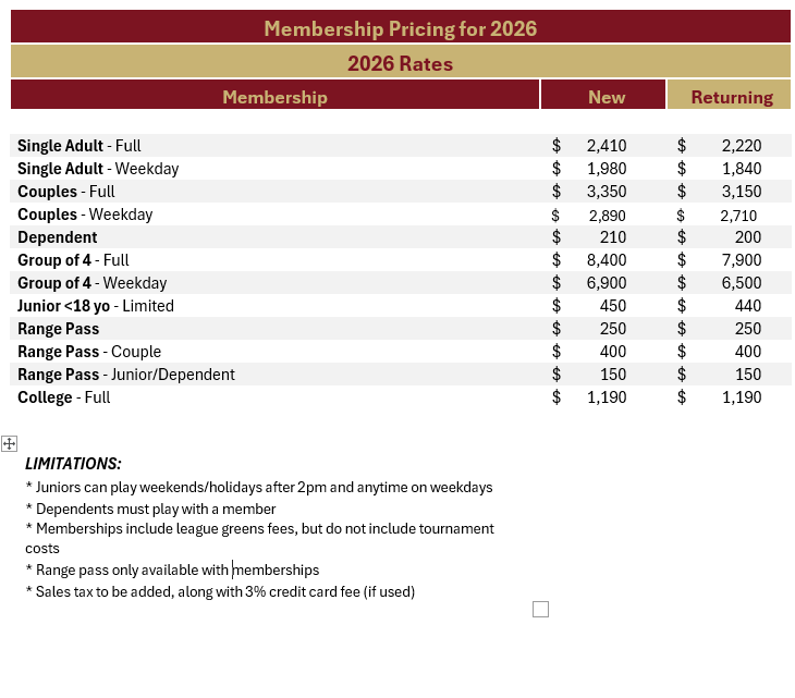 Men’s and Women’s League — All memberships include free greens fees for League play.
